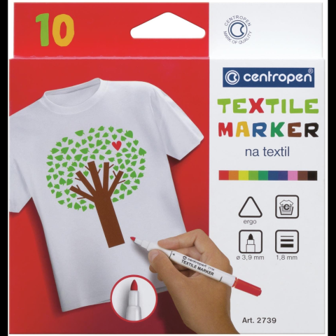 Centropen 2739 Textilmarker, ergo, 10 db a csomagban (8595013632635) filctoll, marker termékleírás