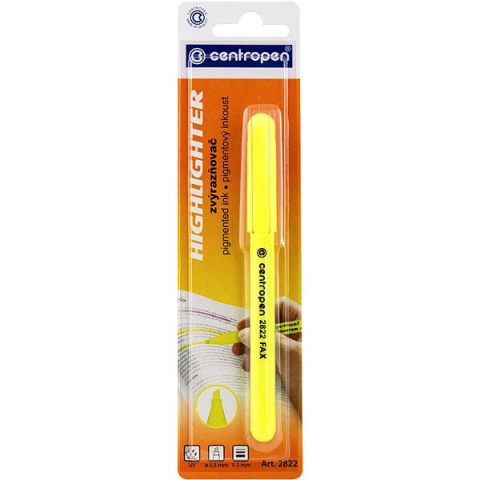 Szövegkiemelő otthoni és irodai használatra, vágott hegyű, max. 3 mm vonalvastagság, 1 db-os csomag, sárga színben A szövegkiemelők olyan hasznos írószerek, amelyek minden irodában és a legtöbb háztartásban is megtalálhatók. A minőségi Centropen szövegkiemelő használatával sosem fogjuk szem elől téveszteni a fonto