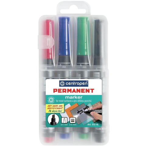 Centropen 8516/4 Tartós marker, kiszáradásmentes, tokban (8595013617144) filctoll, marker termékleírás