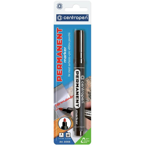 Marker - tartós, használható textil és bútor felületeken, akril, hegy formája kerek, 2,5 mm vonalvastagság, kerek markolat, A szuper CENTROPEN 8566 - fekete termék leglényegesebb előnyei A jól kihasználható Centropen állandó marker egy sokoldalúan kihasználható íróeszköz Kerek alak, hogy könnyű legyen a kézben tartani Fedé