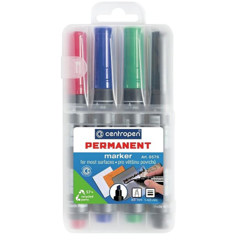 Marker - tartós, alkoholos, vágott heggyel, vonalvastagság 4,6 mm, kerek markolat, 4 marker a csomagban A kedvelt Centropen 8576/4 Tartós marker, tokban termék legfontosabb tulajdonságai A közkedvelt Centropen alkoholos markerek bármilyen alkalomra használhatók Kerek forma a jobb kezelhetőség érdekében