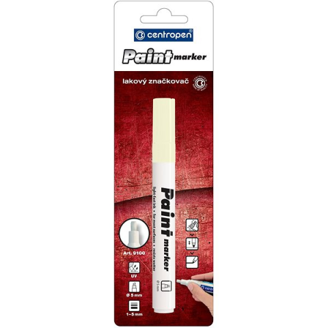 Marker - tartós, használható textil felületeken, hegy formája vágott, 5 mm vonalvastagság, kerek markolat, A jól kihasználható CENTROPEN 9100 - lakk, 2-5mm, fehér termék fontosabb tulajdonságai A szuper Centropen tartós marker nagyszerű segítség minden alkalommal Kerek alak a jó fogás érdekében Használható