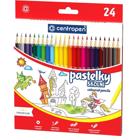 Színes ceruza Centropen - hatszögletű, jobb- és balkezes, papír felületekre, hagyományos színek, papír csomagolás, 24 ceruza a csomagban Ezen Centropen színes ceruza olyan művészi eszköz, amellyel kifejezhetjük kreativitásunkat és papírra vethetjük fantáziánkat. Hatszögletű formája nagyban hozzájárul kényelmes használatához. Ez a legki