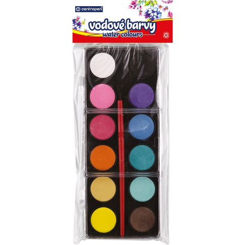 Akvarell festék - 12 féle szín 22 mm-es festékkorong átmérővel, 3 éves kortól ajánlott, ecset a csomagban Az igényes kialakítású CENTROPEN 9541 - 22mm, 12db termék legfőbb előnyei A formatervezett Centropen vízfesték kreativitásra ösztönöz, és kitágítja a képzelet határait a gyerekek és a felnőttek számár