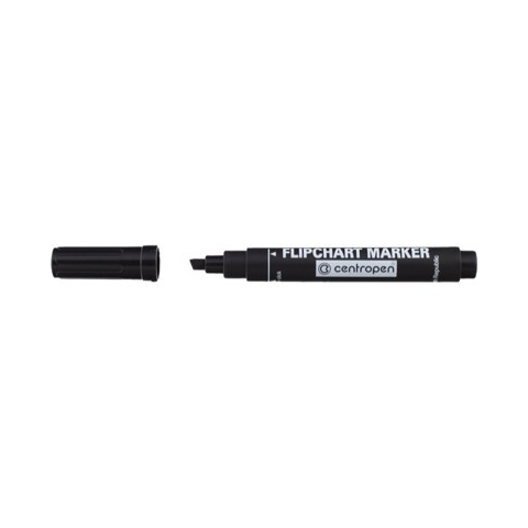 Vágott hegyű filctoll flipchart táblához, kiszáradással szemben nagy ellenállású tintával. a kiszáradással szemben ellenálló tinta hagyományos filchegy vonalvastagság: 1 - 4,6 mm nem itatja át a papírt flipchart táblához a fedél szellőző nyílással rendelkezik darabszám a csomagban: 10 db szín: fekete