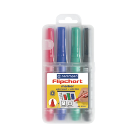 Vágott hegyű filctoll flipchart táblához, kiszáradással szemben nagy ellenállású tintával. a kiszáradással szemben ellenálló tinta hagyományos filchegy nem itatja át a papírt flipchart táblához a fedél szellőzőnyílással rendelkezik darabszám a csomagban: 10 db szín: 4 db-os készlet