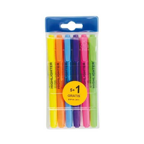 A folyékony, ferde hegyű szövegkiemelő iskolai és irodai használatra alkalmas. Hagyományos és faxpapírra nyomtatott dokumentumok szövegének kiemelésére használható. Különböző színekben kapható. hagyományos filchegy a toll végének szélessége: 1 - 4 mm a fedél szellőző nyílással rendelkezik faxpapíron is használható új design ergonomikus fogással darabszám a csomagban: 10 db szín: 6 db-os készlet