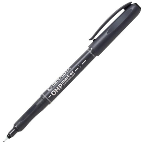 Centropen alkoholos filc S fekete OHP Permanent 2634 Centropen alkoholos filc S fekete OHP Permanent 2634 Permanens és vízálló OHP permanens filc. Kiválóan alkalmazható majdnem minden felületen: műanyag, fém, üveg, fólia, CD lemezek. Gyorsan száradó