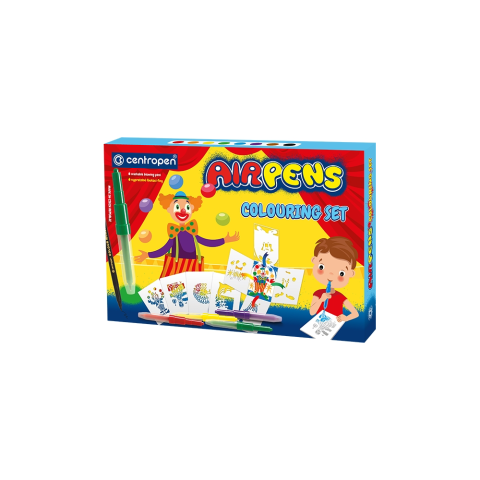 Filctoll fújós készlet Centropen AIRPENS 1500 Colouring Set 9 klf. szín Papírra való használatra ajánlott. Órákig tartó nagyszerű szórakozást nyújt, 3 éves kor felett ideális ajándékötlet bárkinek. A vízbázisú tinta lemosható, 60°-on kimosható és egész