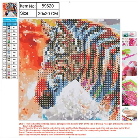 Kreatív gyémántszemes kirakó Centrum 20x20 cm, Zebra A festmények gyémánt technikával történő kirakása nagyszerű stresszoldó, meditációs és relaxációs tevékenység.Az 5D effektusnak köszönhetően a festmények elképesztő, elbűvölő háromdimenziós megjelen