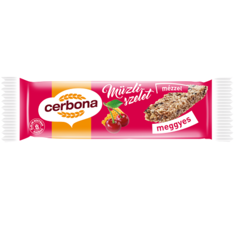 Extrudált gabonapelyhek (rizsliszt, kukoricadara, BÚZADARA, zsírszegény kakaópor, étkezési só), Glükóz-fruktózszörp, Nedvesítőszer (szorbit), Aszalt szilvaapríték (szilva, dextróz), FÖLDIMOGYORÓ, Aszalt meggyapríték 6, 7% (meggy 85%, dextróz), Méz 5, 7%, Növényi zsír (pálma), Lapított ZABPEHELY, Maltodextrin, BÚZADEXTRIN, Fagyasztva szárított m