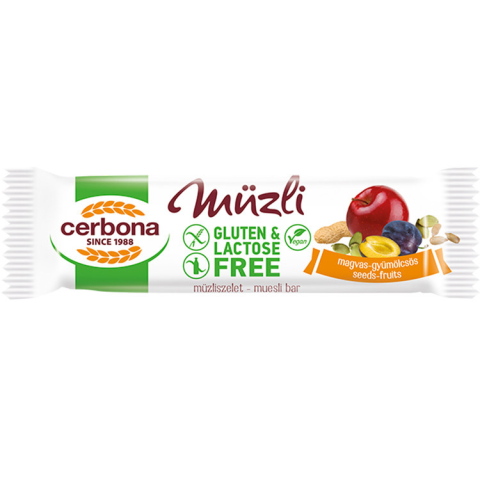 Cerbona magvas-gyümölcsös gluténmentes müzliszeletFedezd fel a Cerbona gluténmentes magvas-gyümölcs