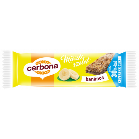 Cerbona Banános müzliszelet Kakaós bevonóval és Édesítőszerrel 20 g Kóstold meg a csökkentett cukortartalmú Cerbona Banános müzliszeletet, melyet a többfajta gabonapehely és banán darabok teszik igazán ellenállhatatlanná. Cukor helyett maltitszirupot...