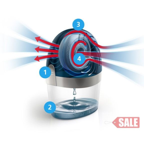 Fürdőszobai páramentesítő készülék 1 db páragyűjtő tablettával. Segít az optimális páratartalom elérésben a fürdőszobában. A készülék jellegzetes formája lehetővé teszi, hogy a tabletta a lehető legnagyobb felületen érintkezzen a levegővel, páramentesítő rendszere a teljes levegőáramlás révén páratlan hatékonysággal gyűjti össze a levegő felesleges nedvességtartalmát és csökkenti a kellemetlen szagokat.  Praktikus, diszkrét formájával, fehér sz