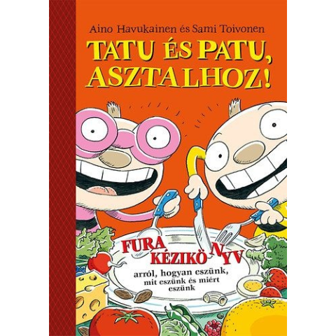A Tatu és Patu sorozat várva-várt KILENCEDIK kötete! És mégis egy kicsit más! Kézikönyv mindazoknak, akikvalaha ettek már, éppen most esznek,vagy tervezik, hogy enni fognak. Kiömlött és kifröccsent ételek szerte a világon. A szendvicskészítés során felmerülő leggyakoribb nehézségek. Hogyan ismerjük fel a nyúlkaböszmét? Kóstolási arcművészet kung fu-stílusban. Erre csak Tatu és Patu képes! Ennél egy kis majomkiflit vagy félősdicsömöt? A furavári fiúk t