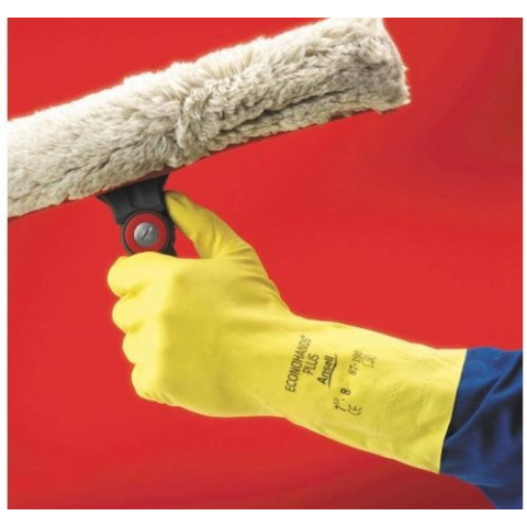 ANSELL 87-190/100 EconohandsPlus - Háztartási munkákra alkalmas - 0,35 mm vastag - természetes latexből készült sárga kesztyű - belül velúrkikészítéssel - Teljes hossza: 30,5 cm.