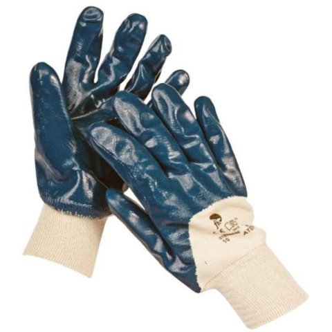 ATER FH nitril mártott védőkesztyű - 11 - Nitrilbe félig mártott varrott pamutkesztyű, - csúszásgátolt tenyérrész, - rugalmas mandzsetta, - amely a szennyeződések bejutása ellen véd. - A kesztyű erősen olajos környezetben, koptató hatású anyago