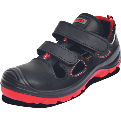 Biztonsági szandál fémmentes lábujjvédővel és átszúrás ellen védő köztalppal, PU/TPU talppal. A felső rész kiváló minőségű színbőr.