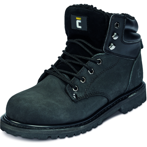 Bélelt munkacipő, antisztatikus, csúszásgátló, olajálló gumi talppal, energiaelnyelő sarokrésszel, vízálló, lélegző nubuk bőr felsőrész.