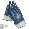 Mártott nitril vedőkesztyű Varrott pamut kesztyű, vastagon mártott csúszásgátló nitril bevonattal, széles mandzsettával, amely védi a ruhaujjat. A kesztyű erősen olajos környezetben, koptató hatású anyagokkal végzett munkára alkalmas. Ebből a kesztyűbő
