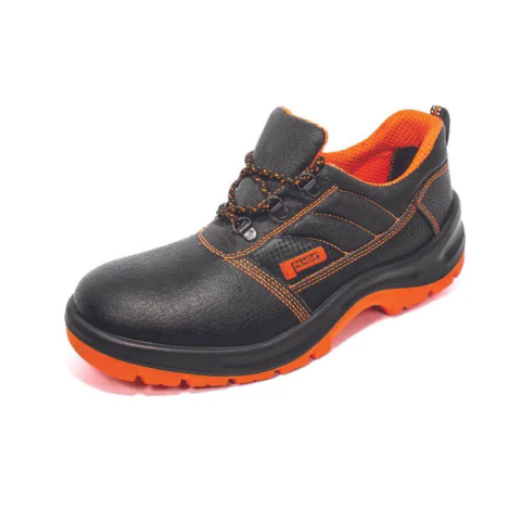 Anyag: Lábujjvédő: fém Felső rész: hasítottbőr Talp: dupla sűrűségű poliuretán Bélés: poliészter háló Leírás: Biztonsági félcipő acél lábujjvédővel. Dupla sűrűségű poliuretánból készült antisztatikus külső talppal, amely kopás- és olajálló, csúszásgá
