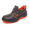Anyag: Lábujjvédő: fém Átszúrás elleni köztalp: fém Felső rész: hasítottbőr Talp: dupla sűrűségű poliuretán Bélés: poliészter háló Leírás: Biztonsági félcipő acél lábujjvédővel és átszúrás ellen védő fém köztalppal. Dupla sűrűségű poliuretánból készü