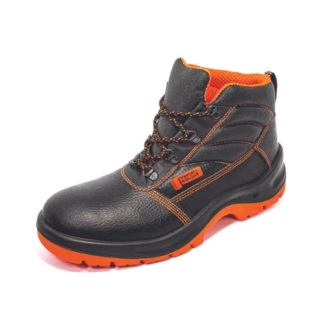 Anyag: Lábujjvédő: fém Felső rész: hasítottbőr Talp: dupla sűrűségű poliuretán Bélés: poliészter háló Leírás: Biztonsági bakancs acél lábujjvédővel. Dupla sűrűségű poliuretánból készült antisztatikus külső talppal, amely kopás- és olajálló, csúszásg