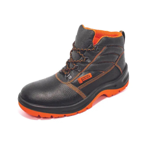 Anyag: Lábujjvédő: fém Átszúrás elleni köztalp: fém Felső rész: hasítottbőr Talp: dupla sűrűségű poliuretán Bélés: poliészter háló Leírás: Biztonsági bakancs acél lábbujjvédővel. Dupla sűrűségű poliuretánból készült, olajoknak és kopásnak ellenálló,