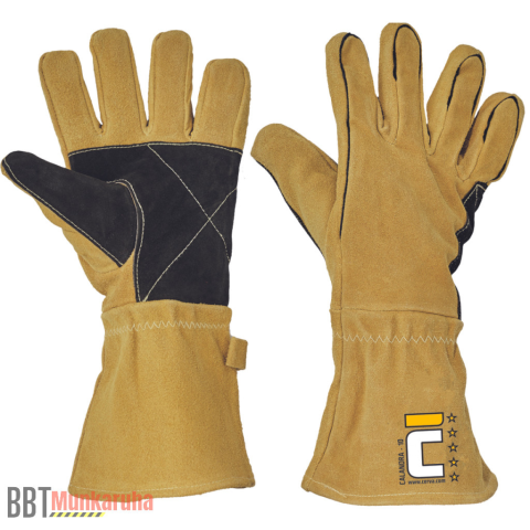 • marha hasított bőr hegesztőkesztyű, pamut béléssel• tenyéren és hüvelyknél erősített , kevlár cérnával varrt Anyag:Erősítés: marha hasítottbőrBélés: pamut, kötöttAlapanyag: marha hasítottbőrMandzsetta: marha hasítottbőrLeírás:• marha hasított bőr heg