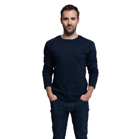 Hosszú ujjú trikó Alapanyag: 100 % pamut, 160 g /m²Hosszú ujjú póló5 % elasztán a nyaknál, formatartóAlacsony nyakvonalSzín:SötétkékMéret: S–3XL