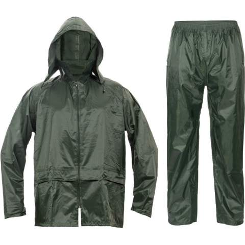 CARINA együttes esőruha Cikkszám: c0312000610003 Kétrészes esővédő öltöny csuklyával, lehegesztett varratokkal, praktikus tartóban. Tulajdonság: vízálló Méret: M | L | XL | XXL | XXXL Szinek: kék, sárga, zöld, terepmintás EN 340 Védőruházat.