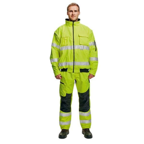 2 az 1ben jólláthatósági téli bélelt dzseki, gallérba rejtett kapucnival, levehető ujjakkal.Széles, fényvisszaverő csíkok gondoskodnak a láthatóságról. Víz és szélálló jólláthatósági téli, bélelt dzseki, magasított álló gallérralA dzseki ujjai levehető