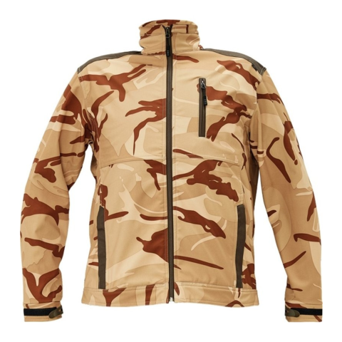 CRAMBE softshell dzseki terepm bézs 2XL • férfi softshell dzseki állógallérral • Oxford 600D erősítések a vállrészen • cipzáras oldalzsebekkel • cipzáras mellzsebbel • tépőzárral szűkíthető mandzsetták