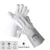 Hegesztőkesztyű Színmarhabőr tenyerű és hasított marhabőr kézhátú, bélés nélküli kesztyű 15 cm széles merev mandzsettával. Alapanyag: Marhabőr Tanúsítvány: hegesztés – B típus. Ez a bőr hegesztő kesztyű megfelel az EN 21420, EN 388, EN 407 szabványo