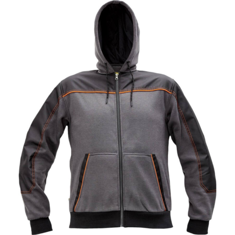 CREMORNE kapucnis kardigán szürke XXL • férfi cipzáras kapucnis kardigán • puha tapintású, belül fésült anyagból • 2 kenguruzseb elöl • Oxford 600D erősítés a váll- és könyökrészeken • rugalmas passzé az ujjakon és a kardigán alján • hurkok, amelyekkel
