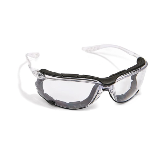 Kivehető keretes védőszemüveg A termék megfelel az EN 166 szabványnak. Pillekönnyű védőszemüveg levehető (EVA) habosított betéttel, ami lezárja a rést a szemüveg és az arc között, jelentősen növeli a biztonságot a repülő szemcsékkel szemben. Karcálló és p