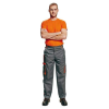 Kényelmes szabással kialakított, kevertszálas alapanyagból készült munkásnadrág szürke-narancssárga színösszeállításban. Kényelmes szabású munkásnadrágAustralian Line típusú, kevert szálas alapanyagból készült munkásnadrágDerekán körben övbújtatók tal