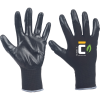 Fekete, környezetbarát, varratmentes munkavédelmi kesztyű újrahasznosított poliészter fonalból készül, amely kényelmes viseletet biztosít egész napra. A tenyérrészt habosított nitrilbevonat fedi, amely kiváló fogást és rugalmasságot nyújt, különösen n