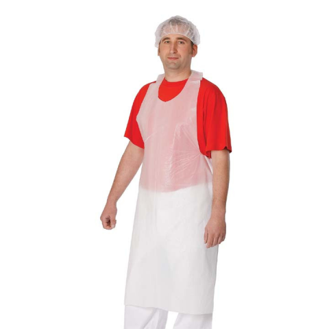 Egyszerhasználatos kötény Alapanyag: 100 % polietilén A termék megfelel az EN 340 szabványnak. Szín: Áttetsző fehér Hosszúsága: 130 cm, Szélessége: 71 cm Kiszerelés: 100 darab / csomag Élelmiszeripai, egészségügyi, mezőgazdasági, takarítási munkák során