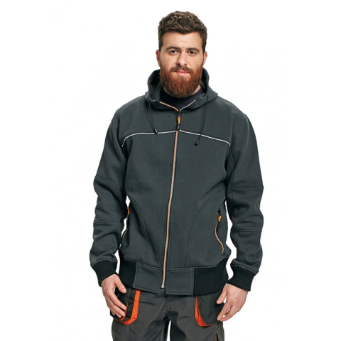 EMERTON NEW kapucnis pulóver fekete 3XL? modern stílusú pulóver két színes cipzárral és kontrasztos díszítésekkel ? fényvisszavető elemek mellrészen és a háton ? rugalmas, kötött mandzsetta az ujjakon és a pulóver alján ? rugalmas zsinór a kapucniban