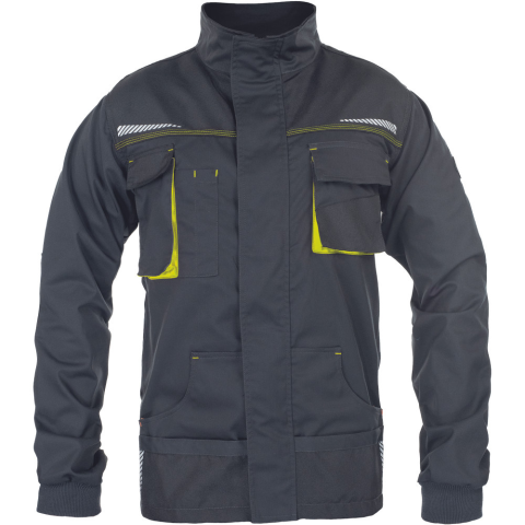 Rugalmas anyagú munkáskabát Ez a férfi munkakabát a hozzá tartozó derekas vagy kantáros nadrággal együtt alkot egy jó megjelenést munka közben is. Légy jól öltözött napközben is! A munkáskabát eleje cipzárral nyitható és zárható, ami takarópánttal van fe
