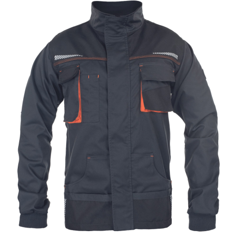 Rugalmas anyagú munkáskabát Ez a férfi munkakabát a hozzá tartozó derekas vagy kantáros nadrággal együtt alkot egy jó megjelenést munka közben is. Légy jól öltözött napközben is! A munkáskabát eleje cipzárral nyitható és zárható, ami takarópánttal van fe