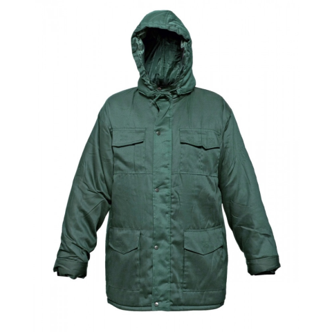 FF BE-02-001 téli kabát navy XXXL? melegen bélelt cipzáras dzseki levehető kapucnival ? két nagy alsó és két kisebb felső zsebekkel, minden tépőzáras hajtókákkal