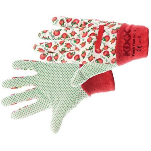 FRESH FRUIT textil védőkesztyű pöt piros 8 - Pamut kesztyű PVC pöttyökkel a csúszásbiztos fogásért. - Ideális száraz munkákhoz, mint csomagolás, árumozgatás. - Nedvszívó tulajdonságú. - Követelmények: EN420
