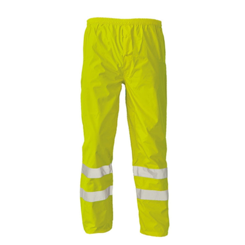 Fényvisszavető csíkos nadrágAlapanyag: 100 % poliészter/PU 100 % poliester/PU A termék megfelel az EN 340, EN471 szabványoknak.Jól láthatósági vízálló nadrág fényvisszavető csíkokkal EN 471: 1,2Rugalmas derékPatentokkal állítható nadrágszárImpregnált PES/