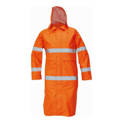 Jól láthatósági esőköpeny Gallérba rejthető kapucnival és fényvisszavető csíkokkal ellátott esőkabát. Szellőzőbetétek a háton és a hónaljrészen Vízőálló lehegesztett varratok Anyag:100 % poliészter, Anyag vastagsága: 135 g/m² Mártás: poliuretán, vastags