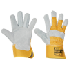 Kombinált védőkesztyű vastag marha hasított bőrből, bélelt tenyérrel, pamut kézfejjel, széles méretválasztékkal. Kombinált védőkesztyű vastag marha hasított bőrből A kesztyű tenyere bélelt Kézfeje pamut anyagból készült A hüvelyk és mutatóujj teljesbő