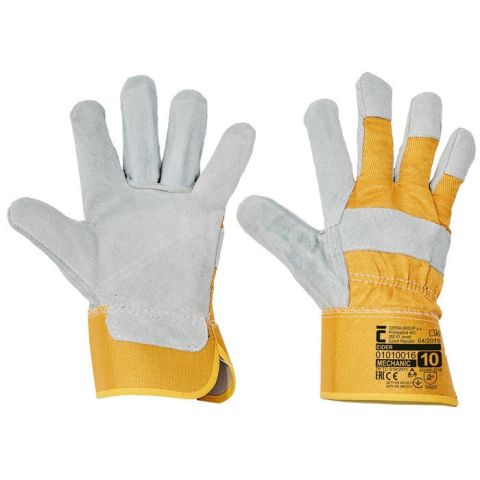 Kombinált védőkesztyű vastag marha hasított bőrből, bélelt tenyérrel, pamut kézfejjel, széles méretválasztékkal. Kombinált védőkesztyű vastag marha hasított bőrből A kesztyű tenyere bélelt Kézfeje pamut anyagból készült A hüvelyk és mutatóujj teljesbő