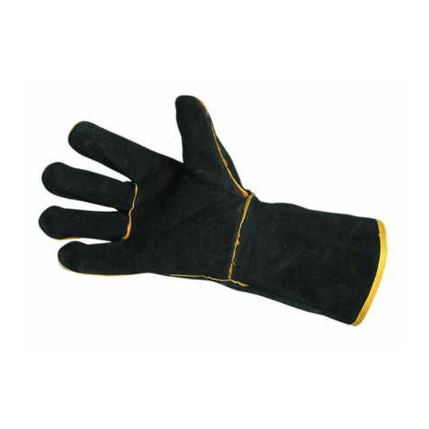 35 cm hosszú, hasított marhabőr kesztyű pamut béléssel és fedett varratokkal. Tanúsítvány: hegesztés - A típus 35 cm hosszú, fekete színű, hasított marhabőr kesztyű Belső bélése pamut anyagú Varratai fedettek Tanúsítvány: hegesztés - A típus Anyagok: