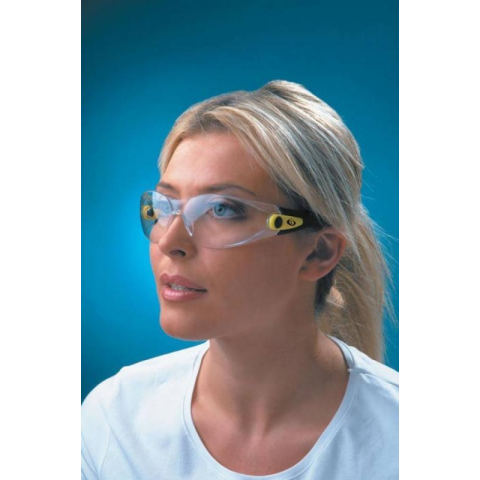 Polikarbonát látómezős szemüveg: dönthető szár, sportos kivitel, karcálló és páramentes látómező, az EN 166 sz. szabvány szerinti F osztály # kis energiájú becsapódás elleni védelem, az 1. optikai osztály, szürke látómező az EN 172 sz. szabvány szerinti,